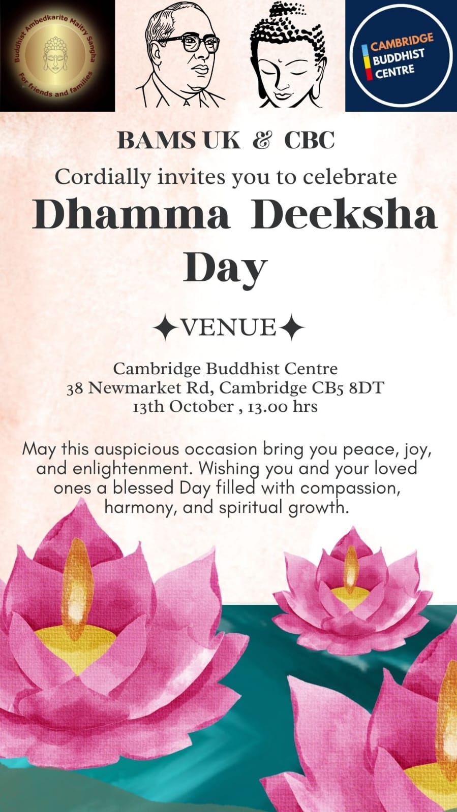 Dhamma Diksha Din in collaboration with Cambridge Buddhist Centre
